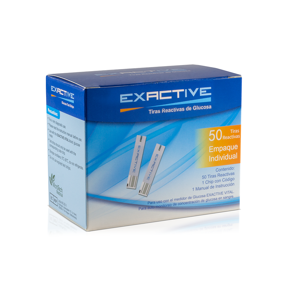 Tiras reactivas para el glucómetro Exactive Vital.
